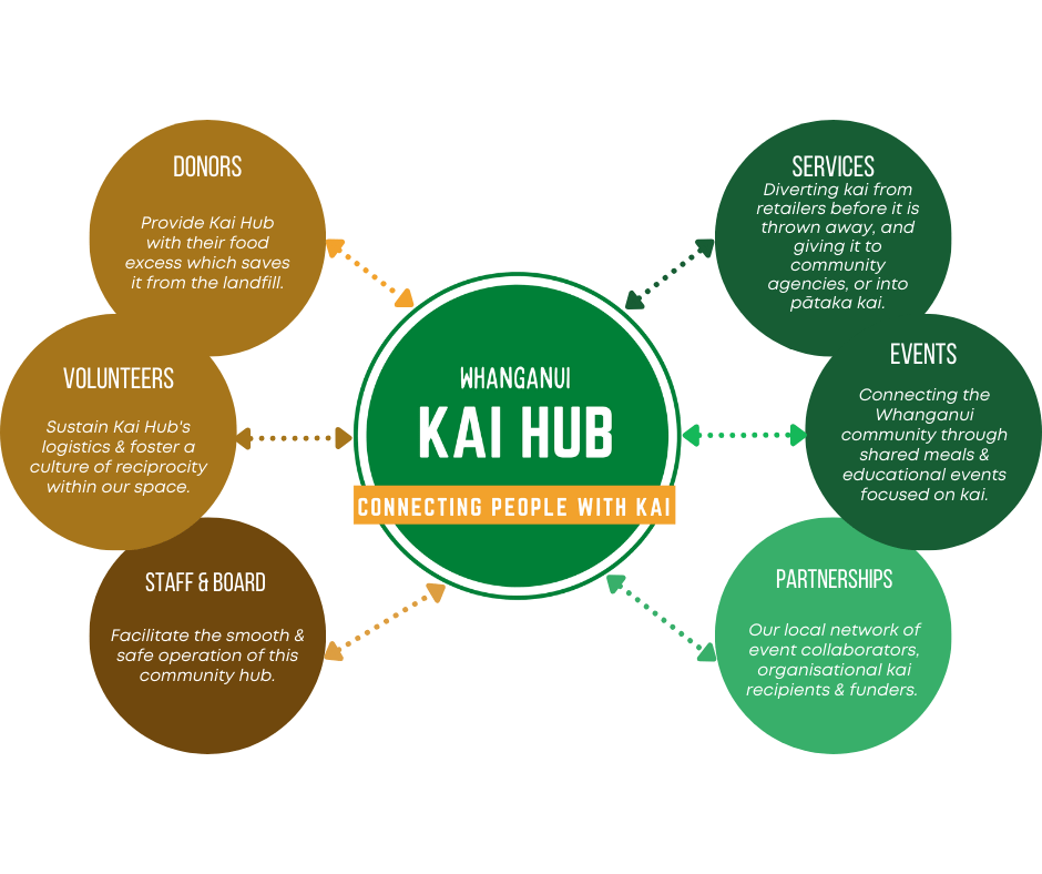 In early 2022 we formed Whanganui Kai Trust, to enable the Whanganui Kai Hub to operate as a food rescue and teaching space in Whanganui. Kai Hub now employs two staff and welcomes many volunteers. We rescue kai four times per week and hold events regularly.